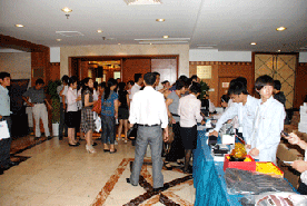 2010年9月19日盐城瀛洲宾馆,欢庆的乐曲喜悦而嘹亮,“缘”月中秋-2010百度中秋客户答谢会的宣传横幅高高悬挂在酒店门庭。下午14:00思科的员工分列在酒店大厅欢迎前来参加会议的嘉宾。在引导员的带领下,嘉宾们陆续来到签到处签到。