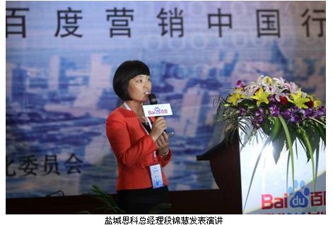 活动现场热闹异常,频繁响起阵阵掌声。时至16:40,百度代理商——盐城市思科网络工程有限公司总经理段锦慧女士介绍盐城企业与百度合作现状,并与在场企业家们分享百度客户五大成功经验:重视推广顾问、听取推广经验;尝试各类关键字、定期分析效果;定期回访顾客,增进友谊、了解需求;聘请专门人才负责网络营销;定期培训、提升接线员业务技能。段总的精彩发言掀起嘉宾又一次掌声热潮,也为此次活动画上圆满的句号。