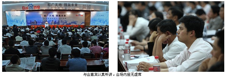 6月10日,阴雨绵绵。“营销中国行”活动在盐隆重拉开帷幕。此次活动旨在探讨如何提升企业网络营销能力来促进地方经济繁荣,受到政府、学术界、商界的高度重视。市经信委主任羊维达、台湾因特网营销研究协会秘书长陈定震、百度公司服务管理部总监任建斌、百度公司渠道部销售总监栾天、百度公司渠道部渠道经理曹宇等35位嘉宾以及500多家盐城市重量级企业家代表出席了活动,共同见证这一盛况!
